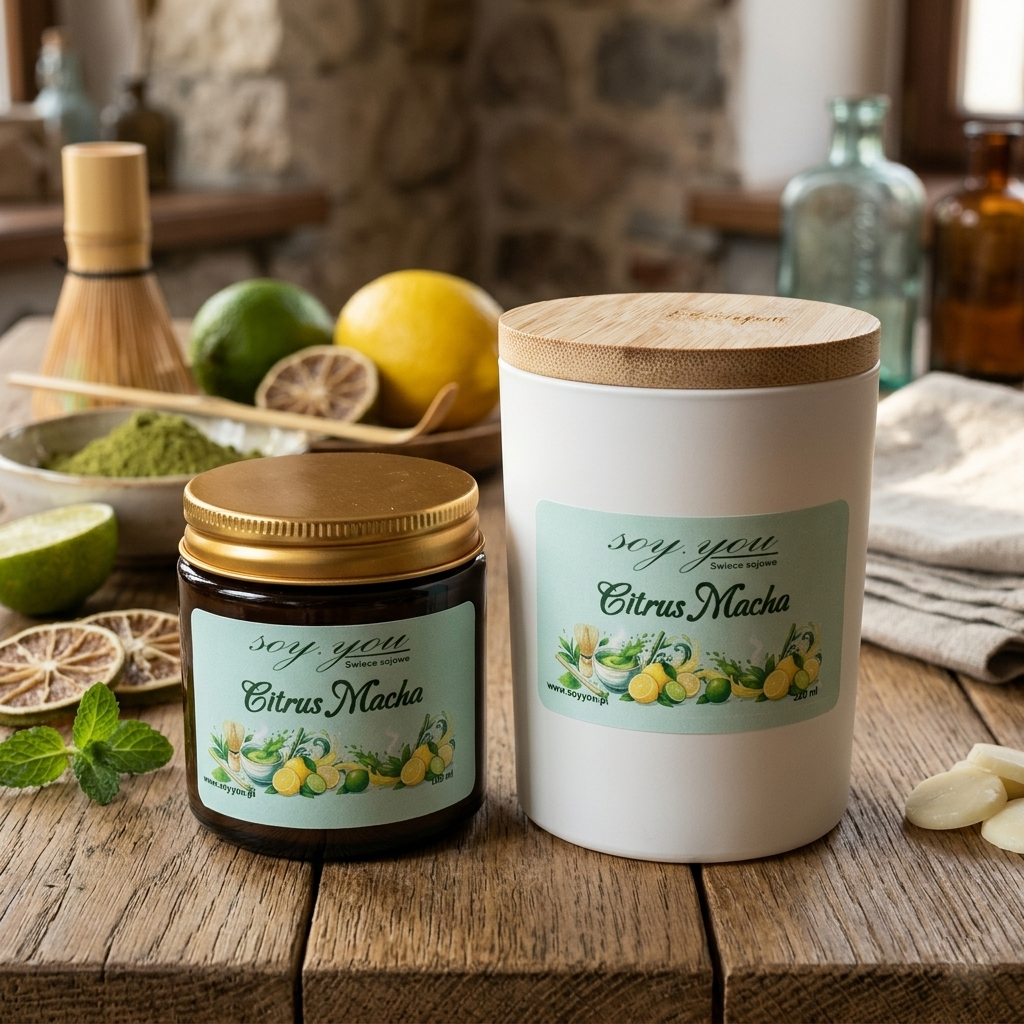 Spokój matchy zostaje tu jednak przełamany radosną, musującą energią dojrzałych cytrusów. Wyczujesz w niej soczysty, cierpki akcent bergamotki oraz słoneczną świeżość trawy cytrynowej, które działają jak chłodny prysznic dla zmysłów. Gdy wosk sojowy zaczyna łagodnie topnieć, te dwie warstwy – zielona i cytrusowa – splatają się w idealnym balansie, tworząc zapach czysty, nowoczesny i niezwykle przejrzysty. To idealny towarzysz popołudniowej lektury lub pracy twórczej, który sprawia, że powietrze staje się lżejsze, a Twój dom zamienia się w luksusowe sanktuarium domowego spa.
