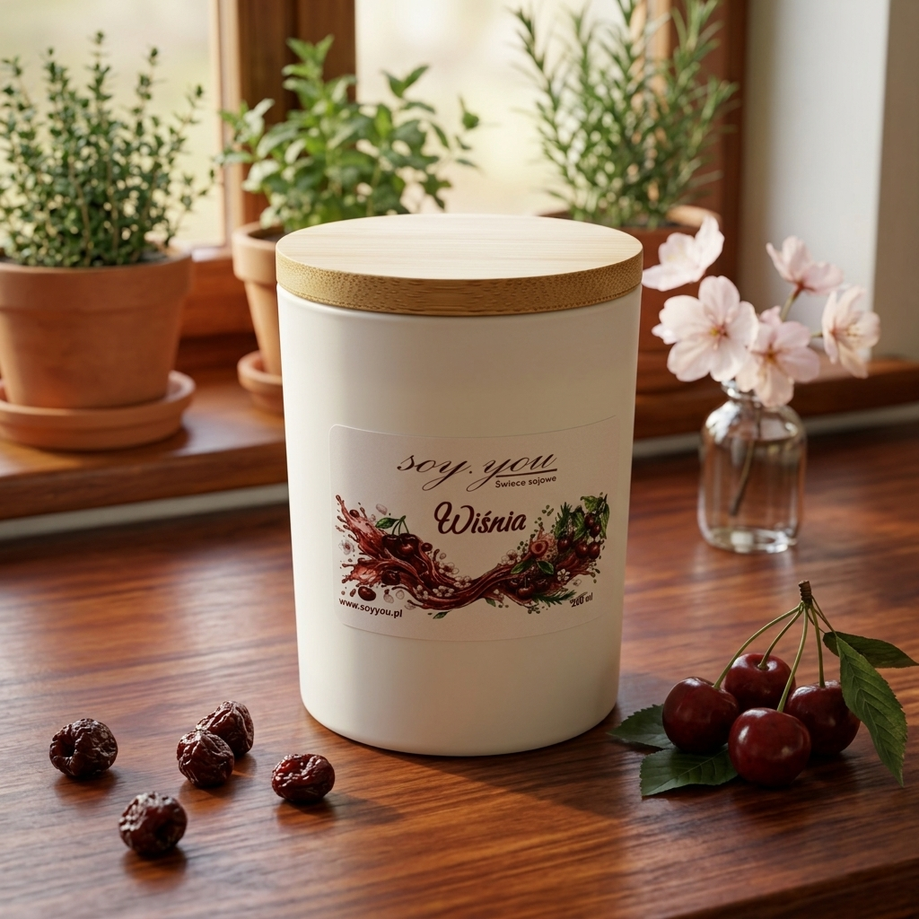 Wyobraź sobie leniwe, słoneczne popołudnie w sercu rozgrzanego sadu, gdzie ciężkie od soku owoce uginają się na gałęziach. Nasza świeca o zapachu dojrzałej wiśni to esencja lata zamknięta w szklanym słoiku. Już chwilę po rozpaleniu knotu, przestrzeń wypełnia intensywny, słodko-cierpki aromat, który kojarzy się z domowymi konfiturami i chwilą beztroski. To zapach głęboki i aksamitny, balansujący między owocową świeżością a kuszącą, deserową słodyczą, która otula wnętrze niczym ciepły koc.